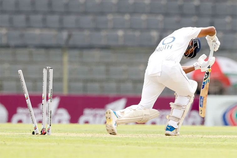 খালেদ আহমেদের নেতৃত্বে তা ঠিকঠাকভাবেই করতে পেরেছেন বাংলাদেশ দলের পেসাররা। খালেদের ৮ ওভার দীর্ঘ প্রথম স্পেলেই বাংলাদেশ পেয়েছে ৩ উইকেট। শরীফুলও দারুণ বোলিংয়ের পুরস্কার হিসেবে পেয়েছেন ১ উইকেট। এর পাশাপাশি দারুণ ফিল্ডিং এনে দিয়েছে ১টি রান আউটও।উইকেট না পেলেও গতিময় বোলিংয়ে ভীতি ছড়িয়েছেন অভিষিক্ত পেসার নাহিদ রানা। বুঝতেই পারছেন, সিলেট টেস্টের প্রথম সেশনে দাপট দেখিয়েছে বাংলাদেশই। প্রথম সেশনে স্কোরবোর্ডই তার প্রমাণ—সিলেট টেস্টের প্রথম দিনে মধ্যাহ্নভোজ বিরতির আগে ৯২ রানে ৫ উইকেট তুলতে পেরেছে শ্রীলঙ্কা।